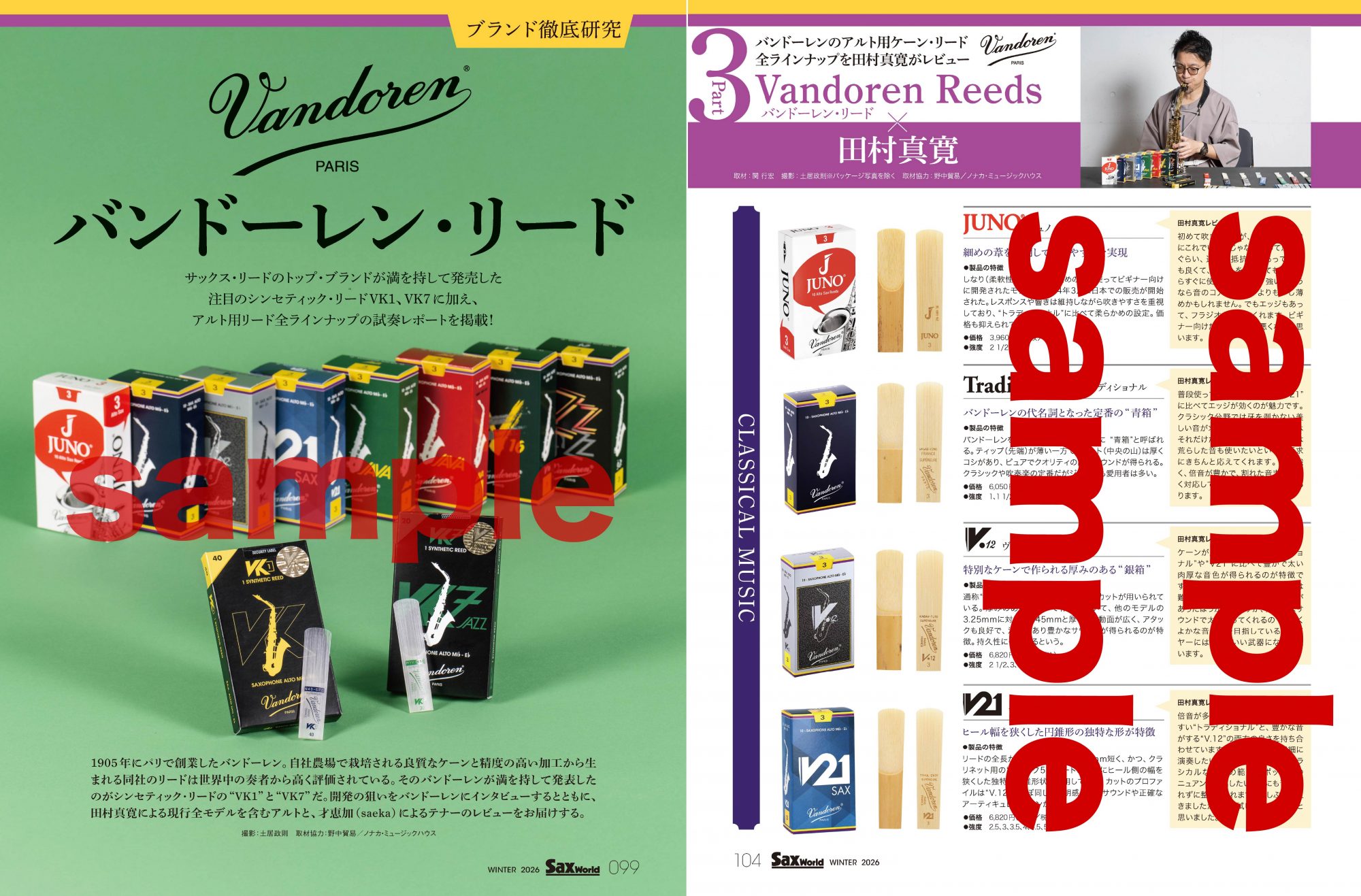 1905年にパリで創業したバンドーレン。自社農場で栽培される良質なケーンと精度の高い加工から生まれる同社のリードは世界中の奏者から高く評価されている。そのバンドーレンが満を持して発表したのがシンセティック・リードの“VK1”と“VK7”だ。開発の狙いをバンドーレンにインタビューするとともに、田村真寛による現行全モデルを含むアルトと、才恵加(saeka)によるテナーのレビューをお届けする。